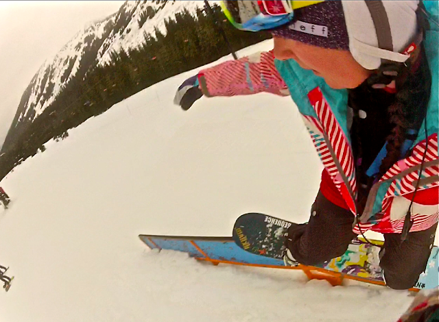Sunday was a slow day for the Snowsports School, so we spent the day lapping the park. It's the first good park session I've been able to have all season. The only time the park is open is from 10-3 on the weekends, which is typically our busiest time and we're always teaching. It felt good to make those park laps, but since being in AK, my love for the park is fading as my love for natural features and pow turns are taking over. Yesterday the snow was amazing on the west side of the mountain and we found some fun drops to play on. I'm still getting comfortable hitting drops since I've never been able to ride anything like that until we moved here, but I'm stepping it up little by little. I don't plan on tackling anything big soon, unless it's a super deep pow day and I have a nice fluffy landing if I bust :)
